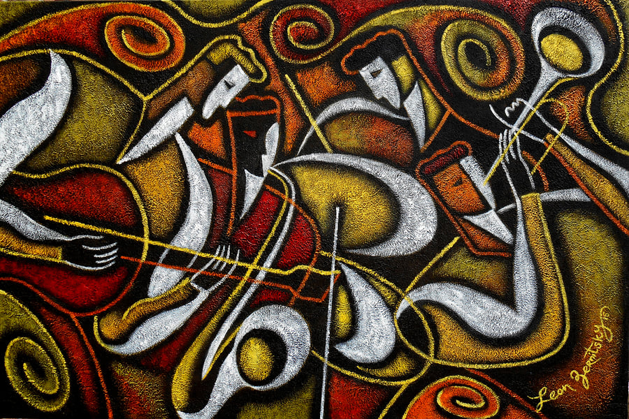 Swing Jazz Decorative Contemporary Original Painting. Free Shipping to US and Canada